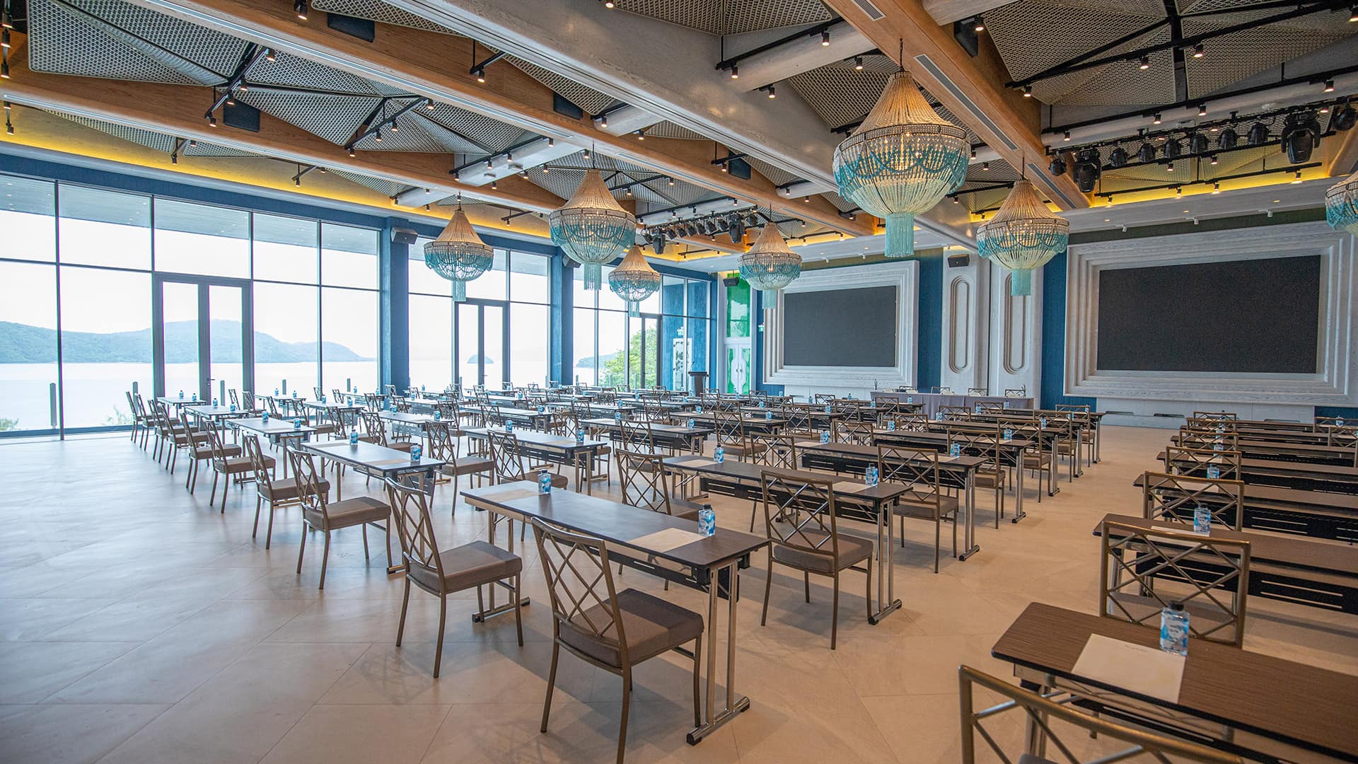 Elevate your event experience at Yaya. Designed with a free-flow concept in mind, the interior is inspired mainly by curves with walls that resemble a wave with a bubble pattern and a curved ceiling, giving the building and its atmosphere the feeling of being outdoors. The furniture placement is also loosely intended to replicate natural elements like stone and wood scattered across the space. However, these features are also dynamic, providing guests with a sense of refreshment and enthusiasm.