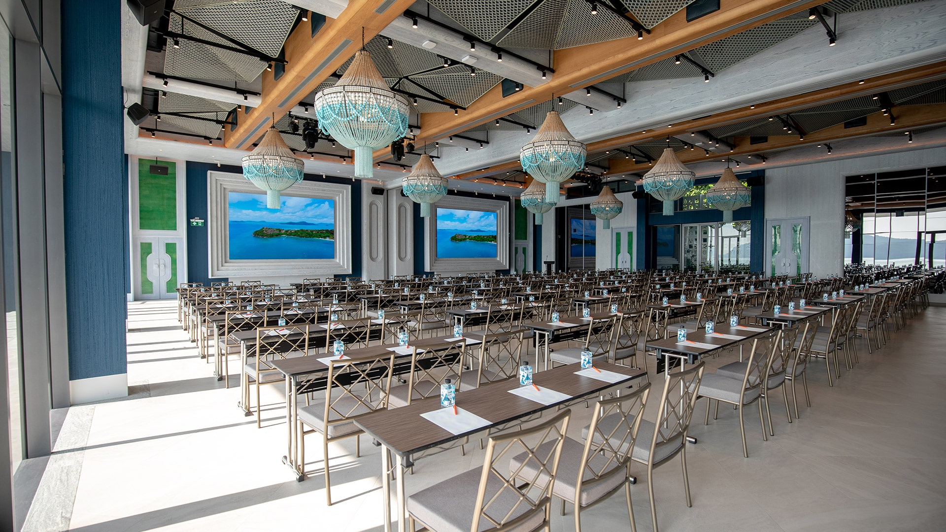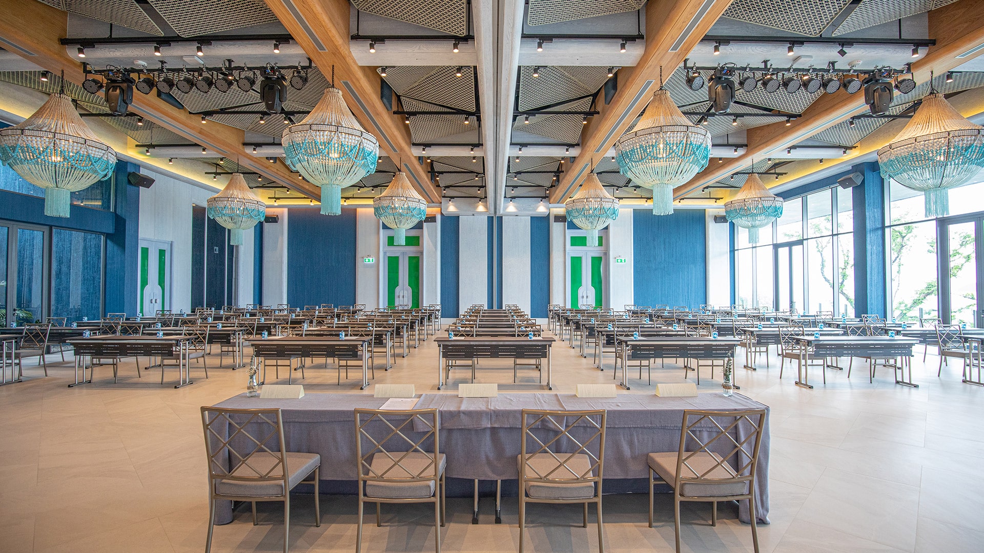 Elevate your event experience at Yaya. Designed with a free-flow concept in mind, the interior is inspired mainly by curves with walls that resemble a wave with a bubble pattern and a curved ceiling, giving the building and its atmosphere the feeling of being outdoors. The furniture placement is also loosely intended to replicate natural elements like stone and wood scattered across the space. However, these features are also dynamic, providing guests with a sense of refreshment and enthusiasm.
